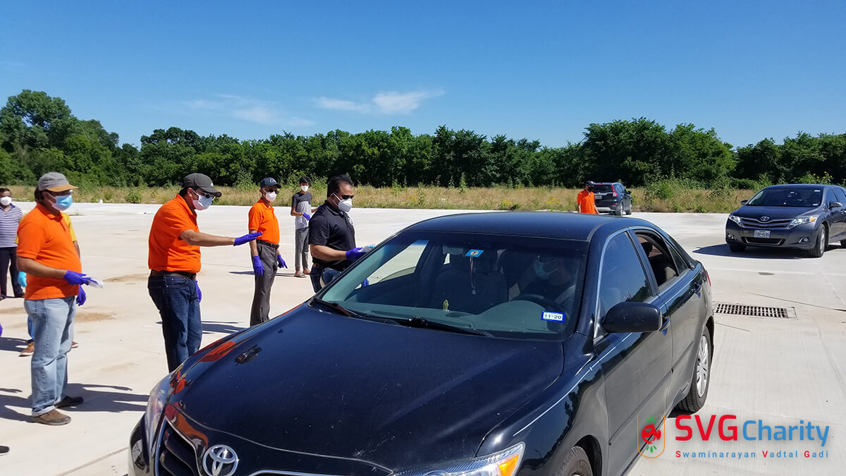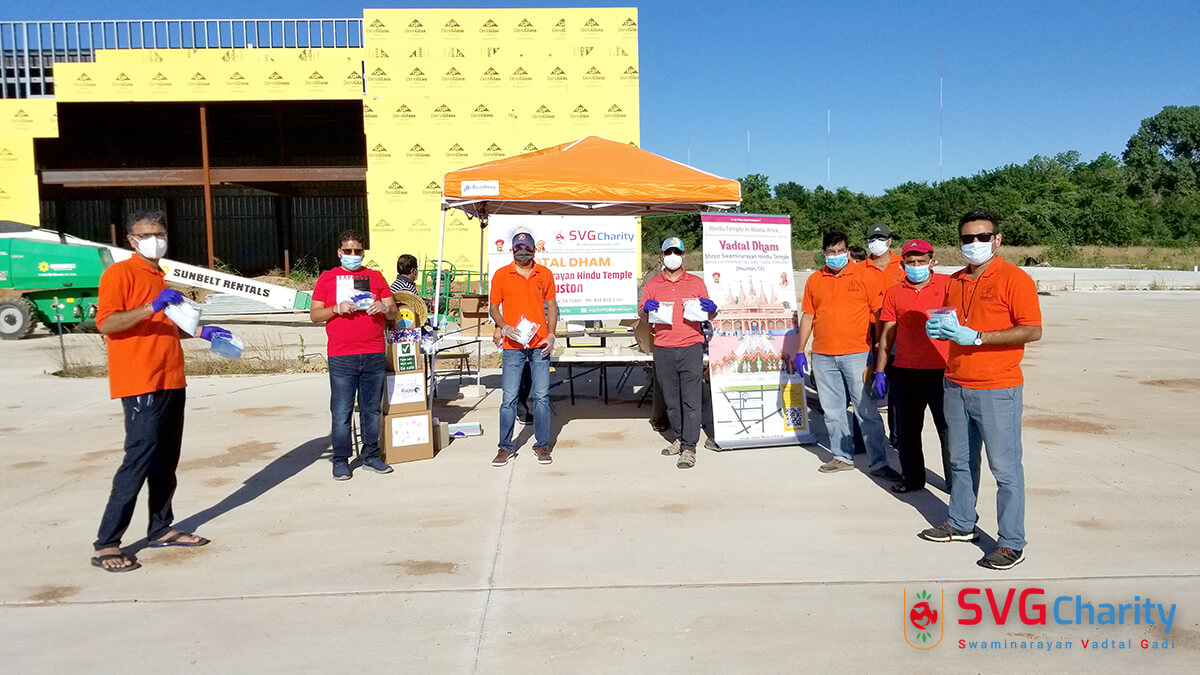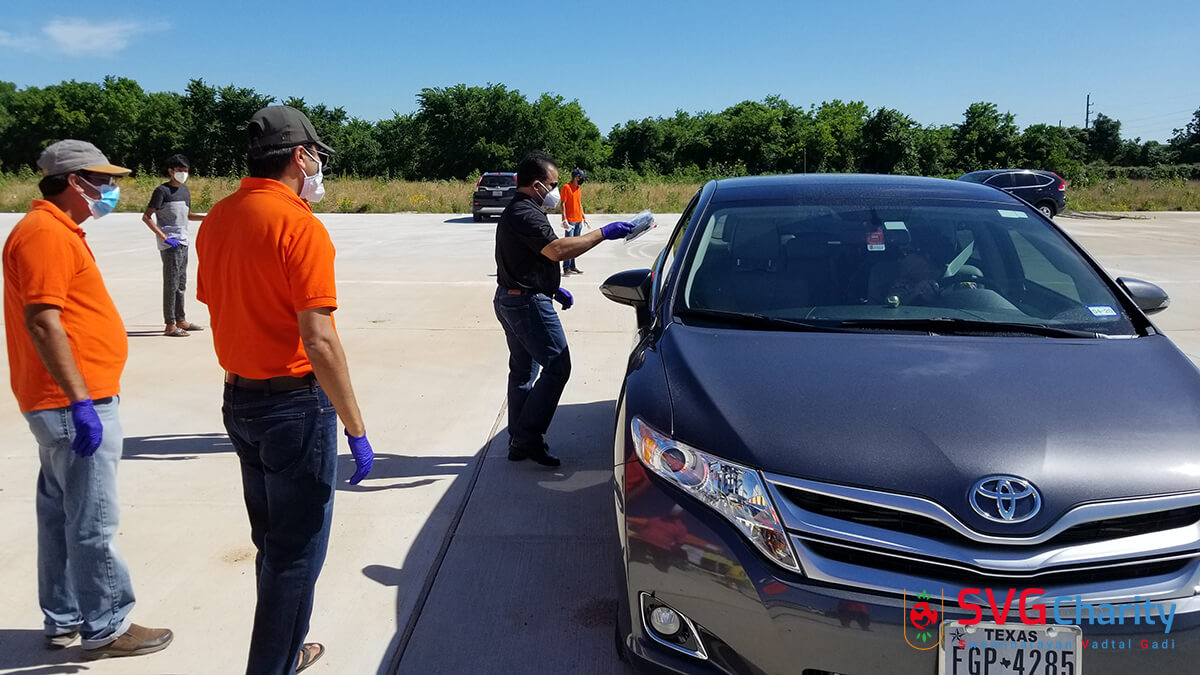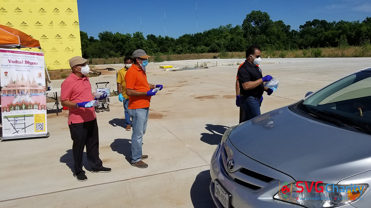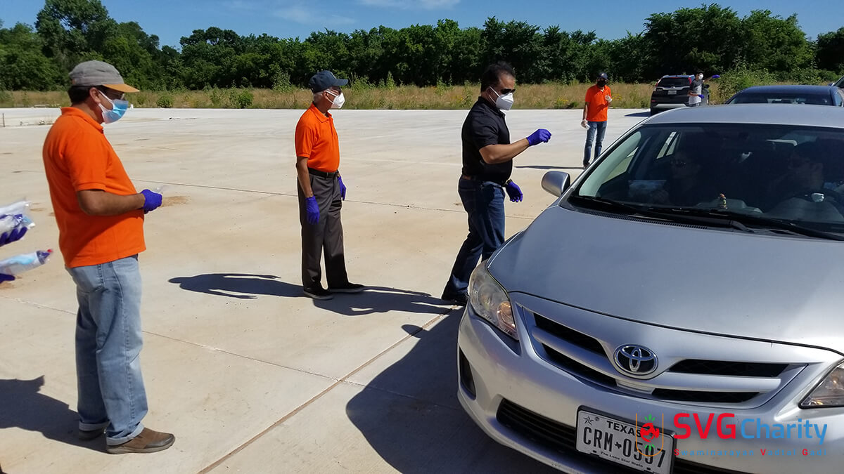 Home » Photo » SVG Charity : Corona (COVID-19) PPE Kit Drive Thru By Vadtal Dham Houston,TX USA
