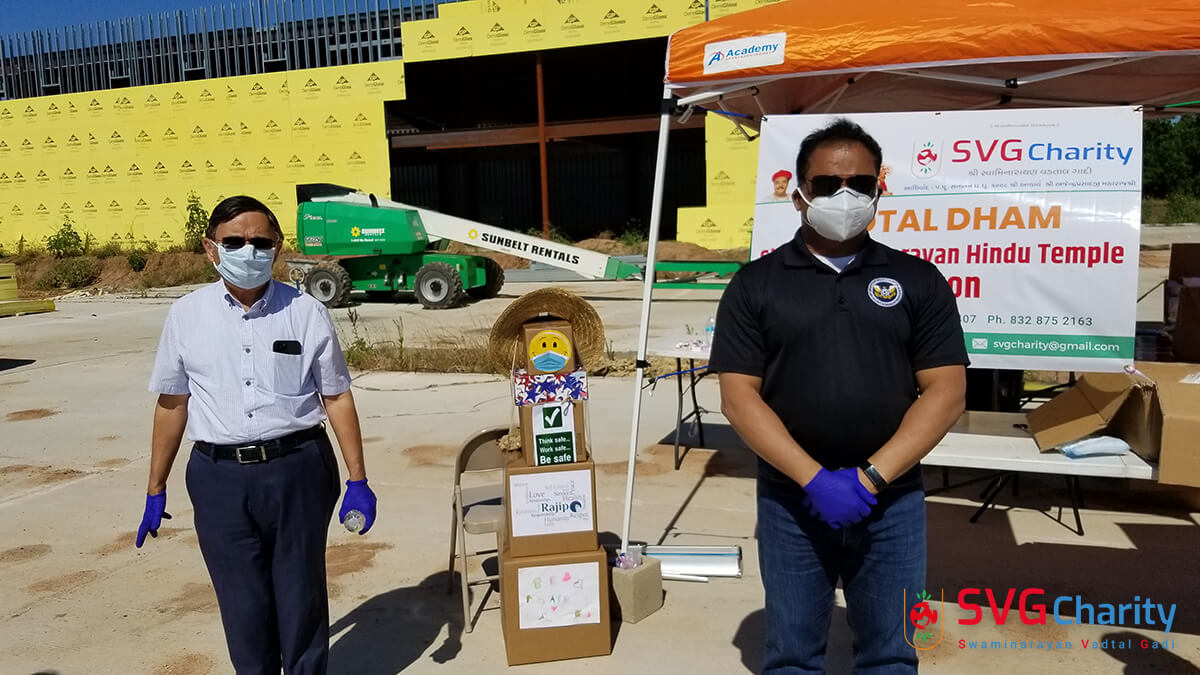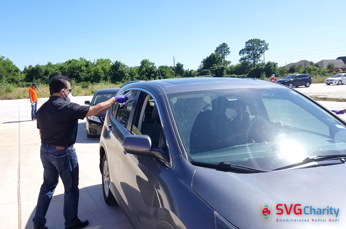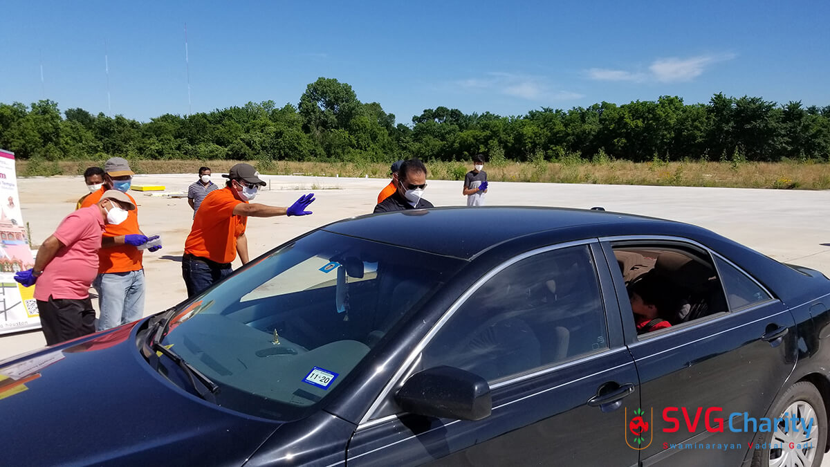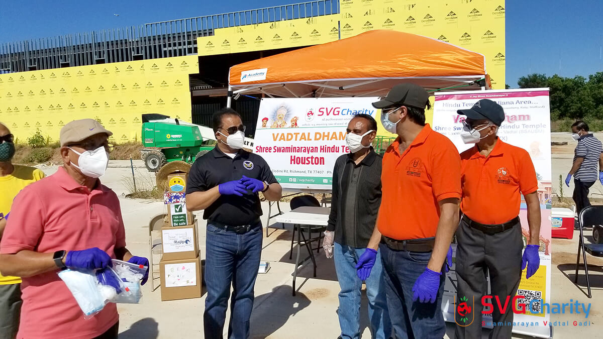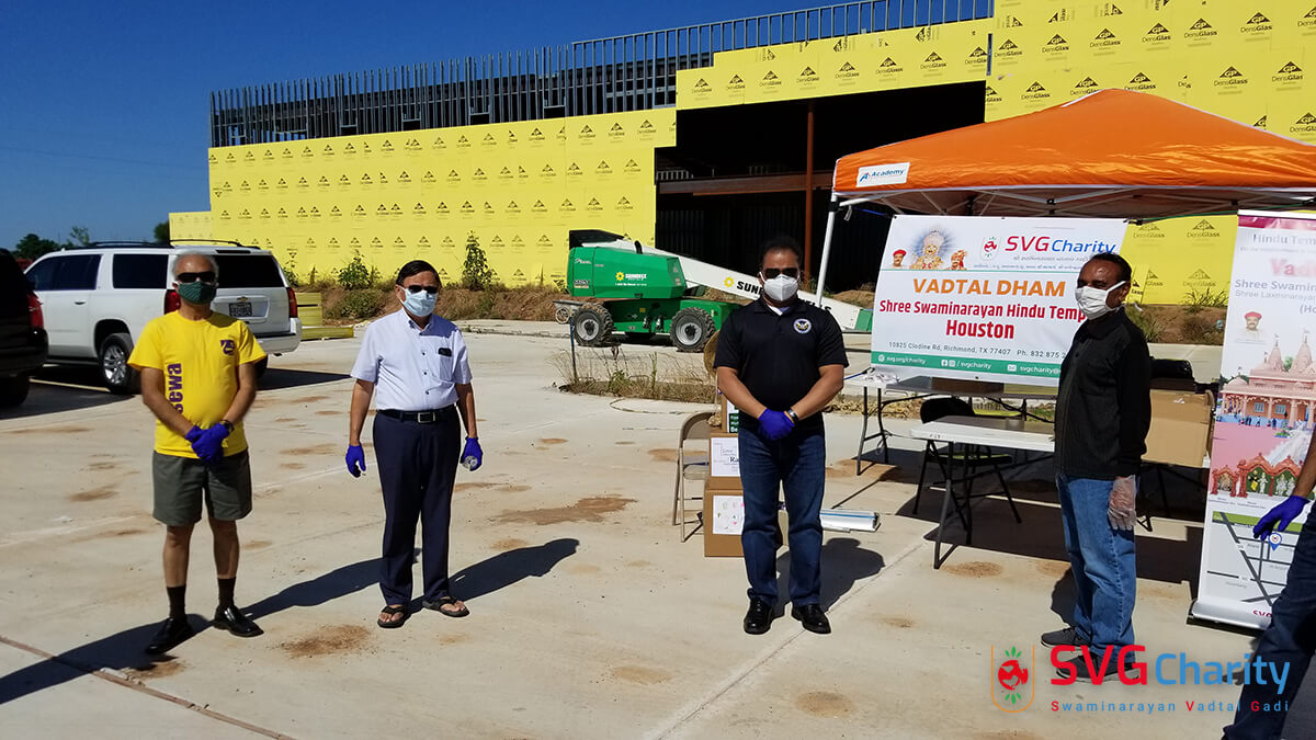 Home » Photo » SVG Charity : Corona (COVID-19) PPE Kit Drive Thru By Vadtal Dham Houston,TX USA