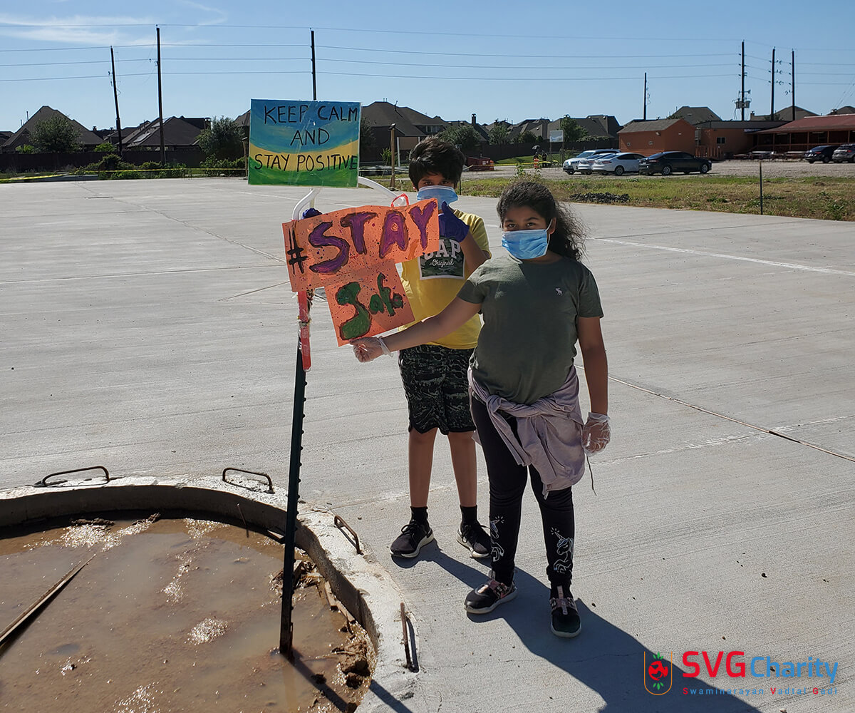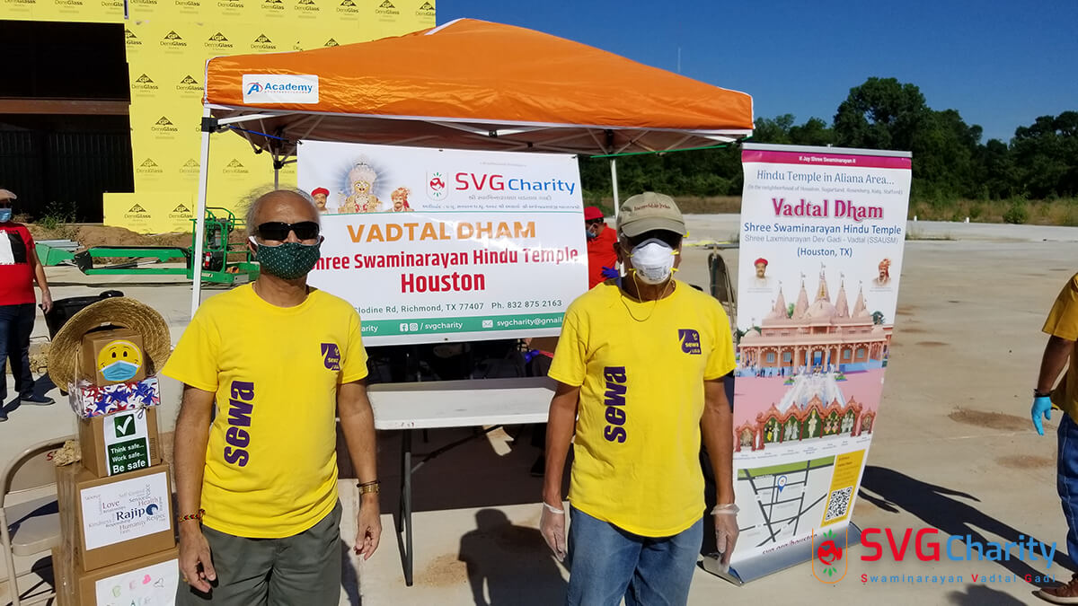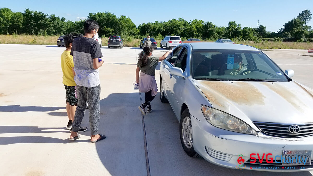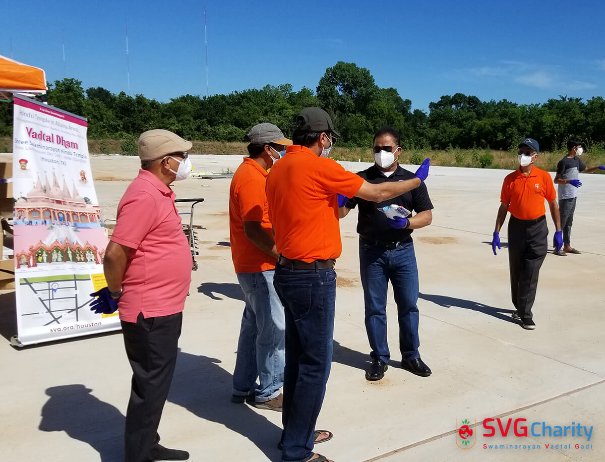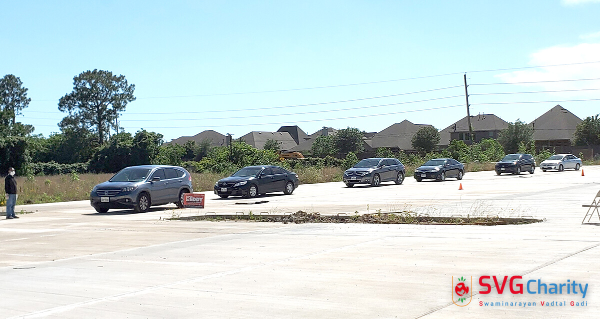 Home » Photo » SVG Charity : Corona (COVID-19) PPE Kit Drive Thru By Vadtal Dham Houston,TX USA