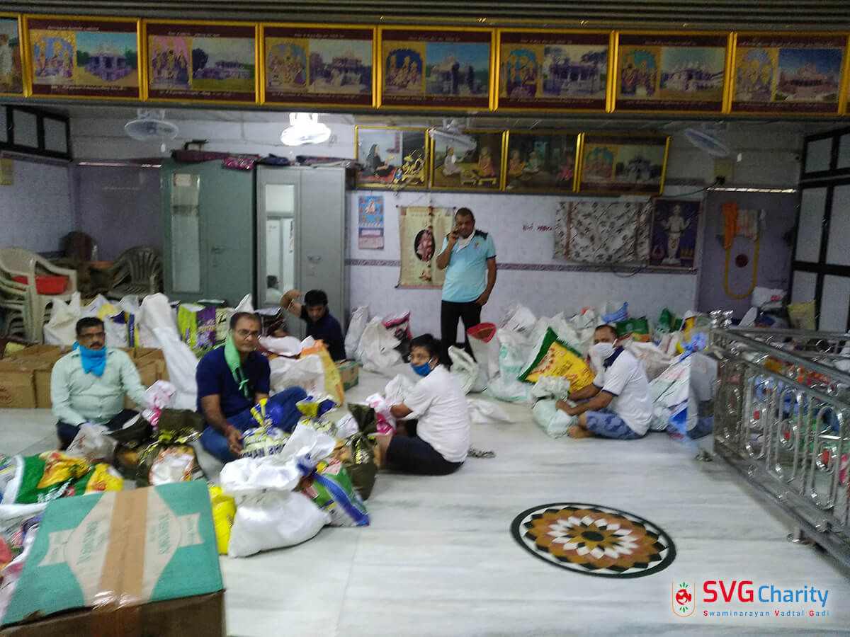 વડતાલ ગાદીના આચાર્ય મહારાજશ્રી ૧૦૦૮ શ્રી અજેન્દ્રપ્રસાદજી મહારાજ શ્રી તથા પૂજ્ય ૧૦૮ શ્રી ભાવિ આચાર્ય શ્રીનૃગેન્દ્રપ્રસાદજી મહારાજશ્રીની પ્રેરણાથી…કોરોના(COVID-19) મહામારી સમયે બોરીવલી, મુંબઈના હરિભક્તો દ્વારા જરૂરિયાતમંદ ગરીબ લોકો માટે અનાજ વિતરણની વ્યવસ્થા કરવામાં આવી રહી છે.