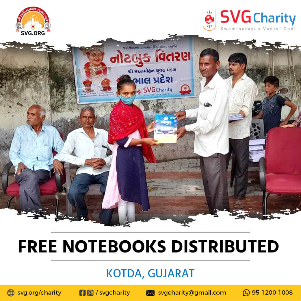 SVG Charity :- Distributed Free Notebooks – Village Kotda Ta. Dhandhuka (Bhal Pradesh), Gujarat | Sep 2021